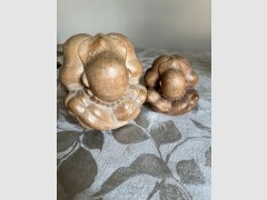 2 x Yogi Man Orang-Malu vintage Holzskulptur, Weinender Buddha