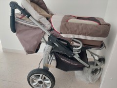 Kinderwagen mit herausnehmbarer Babyschale und Sportsitz. Zusammenklappbar. Farbe: braun/beige