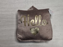 Türstopper/Zuschlagbremse/Türhalter Samtoptik mit Spruch Ein "Muss" für jede Tür und immer ein dekoratives Wohnaccessoire. Mit diesem Türstopper bleibt die Türe offen. Dank seiner Sand-Füllung ist der Stopper schwer genug um jede Wohnungs-Türe zu halten. Die Polyester / Sand - Mischung und die dezenten Farben fügen sich in jeden Wohnraum ein. Details : - Tür-Stopper / Türsack passend mit Spruch als dekorative "Etwas" für jeden Raum - Größe : ca. Höhe 17 x B 17 cm - Material : 100% Polyester - Füllung : 60% Polyester + 40% Sand - Türbremse ist nicht waschbar - Farbe :4 x Rosa, 2 x Grau oder 1 x Braun - Gewicht : 800g Neu mit Etikett Preis pro Stück Versand möglich