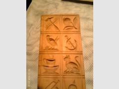 Artkunst24-de biete: Springerle Modell10Motive Pickelhaube Trompete Seefahrt um 1860 besonders seltene Motivwahl Kirschbaum 9x 21x 2,3 cm besonders fein geschnitzt die Darstellungen sind in fein ausgearbeiteten Runden Feldern wiedergegeben ! Provenienz Bäckerei Gauss in Bretten Alle unsere 2850 Angebote in Kategorien unterteilt hier der Link. Artkunst24-de