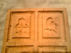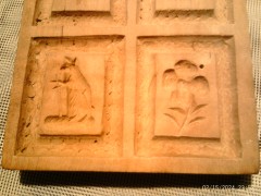 Artkunst24-de biete: Springerle Modell 4 Motive um 1860 besonders seltene Motivwahl Kirschbaum 9x 10,5x 1,8 cm besonders fein geschnitzt die Darstellungen sind in fein ausgearbeiteten Runden Feldern wiedergegeben ! Provenienz Bäckerei Gauss in Bretten