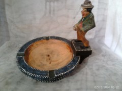 Von Hand geschnitzter Erzgebirge / Schwarzwald Zigarren Aschenbecher geschnitzt um 1930 Höhe: 19 cm Durchmesser: 19 cm nicht benutzt aus der Vitrine!