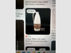 Artkunst24-de biete: Dietlind Bretzler Woba Keramik kleine Henkel Vase "Capri" um 1965 Form 37/20 signiert Bretzler perfekt erhalten , Kubistisches Dekor sehr selten , aus der Vitrine ! Formnr.37/20 signiert!! Dietlind Bretzler Eschwege war Mitgründer der Firma Wabo Keramik Hofheim und dort als Keramiker und Designer , später wohl auch für Ilka Keramik als Designer tätige !