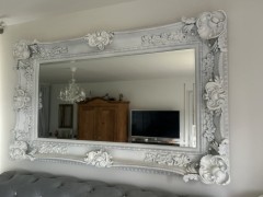 Verkauft wird hier ein Barockspiegel mit Facettenschliff kein Imitat Es handelt sich um echte Handarbeit, der Spiegel ist sehr schwer und massiv. Gegossen wurde er mit Stuckgips. Er ist sehr aufwendig gearbeitet und bemalt. Maße: Breite: 160cm Höhe: 90 cm Tiefe: ca. 14 cm Der Spiegel kann hochkant oder quer montiert werden. Es handelt sich um ein Einzelstück! Gerne können Sie sich auch telefonisch bei uns melden unter der Nummer: 0172-2142556/ oder 0172-6631577