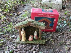 Sammlungsverkleinerung: Krippe Holzkrippe mit Porzellanfiguren, Länge Bodenplatte ca. 14 cm x Breite ca. 6 cm, Höhe: ca. 9 cm, Maria knieend Höhe ca. 5cm, Josef stehend ca. 6 cm, Krippe mit Jesus ca. 3,5 cm lang. Massstab ca. 1:32, mit Originalbox,Material: Holz, Porzellan. Versand möglich. Bei Abholung günstiger. Privatverkauf im Sinne des §3 Abs.5 des Fernabsatzgesetzes. Kein Widerrufsrecht oder keine Gewährleistung! Keine Rückgabe,Wandlungs- oder Umtauschmöglichkeit Alle Artikel in dieser Anzeige werden unter Ausschluß jeglicher Sachmangelhaftung, Komplettheit und Gewährleistung angeboten. Bei Unklarheiten bitte fragen.
