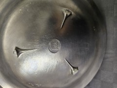 Zinnteller mit Griff/Henkel SKS Zinn 95 % Mann sitzt an der Mühle Mit Punze 1921 Schöner Spruch 13 cm mit Henkel 20 cm Durchmesser