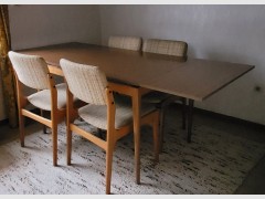 Vintageausziehtisch mit 4 Stühlen aus den 70ern. Guter Zustand. Siehe Bilder Es gibt noch mehr bei der Haushaltsauflösung am Freitag 15.03./Samstag 16.03.24 in der Hauptstr. 52, Münchingen zu finden.