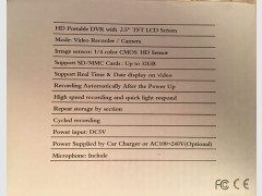 1 DVR HD tragbarer DVR mit 2,5-Tft-LCD-Bildschirm Produktbeschreibung Auto Black Box mit 6 LED Bildschirm kann um 270 Grad gedreht werden Herausnehmbarer Akku Car Black Box mit 2,5-Zoll-Bildschirm Der Preis beinhaltet keine SD-Karte 2,5 '' TFT bunter Bildschirm Modus: 6 IR-LED, H198 Bildsensor: 1/4 Farb-CMOS-Sensor Aufnahmeauflösung: VGA: 640 x 480 Pixel, 30 fps Videoformat: AVI Unterstützt SD / MMC-Karten: Bis zu 32 GB Unterstützt die Anzeige von Echtzeit und Datum auf Video Automatische Aufnahme nach dem Einschalten Hochgeschwindigkeitsaufnahme und schnelles Licht reagieren Wiederholen Sie die Lagerung nach Abschnitten Zyklische Aufnahme Leistungsaufnahme: DC5V Stromversorgung durch eingebauten Akku, Autoladegerät Schnittstelle: USB Gerät ist neu und in original Verpackung Deutsche Anleitung gibt im Internet