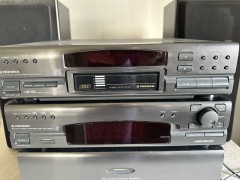 Pionier-Stereoanlage -Pioneer CX-J300 - Vorverstärker -Pioneer M-J200 Leistungsverstärker -Pioneer GR-J300 Equalizer -Pioneer PD-J800 6-Disc-CD-Player Dieses Pioneer-System klingt wirklich wunderschön, es verfügt über einen separaten Leistungsverstärker und ist sehr leistungsstark. Mit dem Equalizer können Sie den Klang Ihrem eigenen Geschmack anpassen. Es ist in einwandfreiem Zustand (keine Flecken!) Bitte schauen Sie sich die Fotos für weitere Details an. Das Set wird mit Kabeln geliefert und ist einsatzbereit! MARKE: Pioneer MODELL: M-J200, CX-J300, GR-J300 and PDJ800M GERÄTETYP: Hi-Fi Anlage ZUSTAND: Hervorragend STÜCKZAHL: 4 ENTHÄLT: Netzkabel GEWICHT: 13 kg Boxen: Pioneer dabei