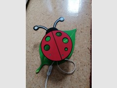 Wandleuchte für Kinder Zimmer in Form Marienkäfer aus Holz. Zwischen Schalter: Länge des Blattes ca.42 cm.