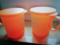 Tupperware 2 orangene Trinkbecher mit Deckel.