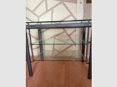 Gut erhalten Fernseh Rack mit 3 Glasablagen Metallrahmen.schwere Ausführung kein billig Zeug .ca 0,75hoch , br 0, 50 , 0,80 lang Selber holen kein Versand Jegliche Sachmängel Haftung schließe ich bei Kauf aus Preis VHB.