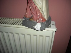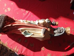 Schwarze Madonna mit Kind. Die Statue ist aus Gips. Hinten am Sockel leicht beschädigt. Siehe Bild. Von vorne nicht ersichtlich. Abholung im Raum Balingen sinnvoll. Versand birgt Risiken. Portokosten zusätzlich. Gesamthöhe ca. 50cm. Auf Sockel beschriftet: Madonna Altötting, Bayern.