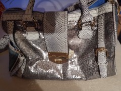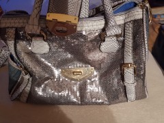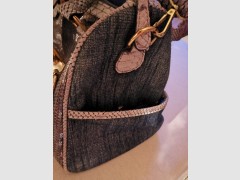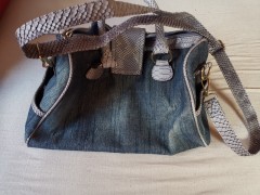 Aus Jeansstoff, viel Innenraum, Vorderseite Pailletten, Seitliche Bereiche für Trink Flasche /Smartphone... Schöne Tasche, gut Erhalten.