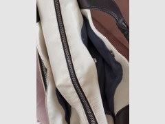 Weiße Handtasche ( marke: Fils) schwarze Stoffgriffe mit Logo ,,Fils- siehe Foto , viel Stauraum, wenig Gebraucht sucht neue Besitzerin