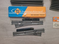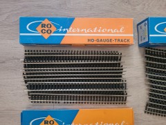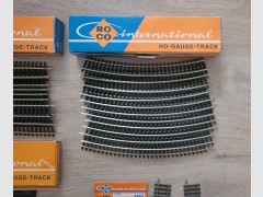 Gleise von Roco für H0, teilw. in Verpackung. Funktion elektronisch nicht geprüft, Weichen schalten aber per Hand. Es können ein paar Schienenverbinder fehlen. Sehr guter Zustand.
