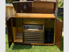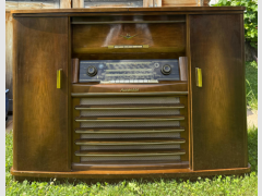 Arabella-57-3d mit 6-fach-Klangregister aus dem Jahr 1956-57, ausgestattet mit einem zusätzlichen internen Bluetooth-Empfänger und einem moderneren Vintage Plattenspieler
