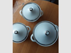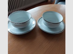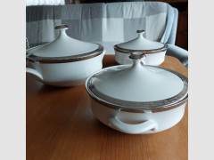 Speiseservice aus den 60er mit Silberrand 34tlg. v. Bavaria Jaeger & Co. m. Fleischplatten, Saucieren, Suppenterinen, 12tlg. Suppen- und Speiseteller Sehr guter Zustand !!