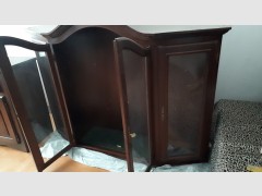Echtholz Vitrinenoberschrank mit 4x Glastüren. ca. 30Jahre alt. Mit Kratzer und Gebrauchsspuren. ca.128cm hoch, 175,5cm lang, 44,5cm breit