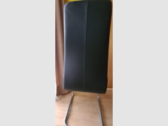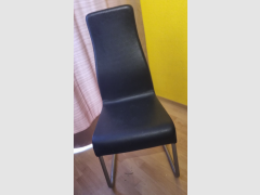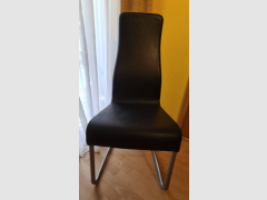 6 Echtleder-Schwingstühle, schwarz, Gestell alufarben, matt. Kleine Gebrauchsspuren an 2-3 Stühlen sichtbar. Originalrechnung vorhanden.