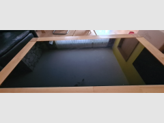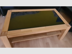 Kernbuche Couchtisch Kernbuch, massiv. Glasplatte schwarz. Eine Ablage vorhanden. 115x65x46 cm Kleine Gebrauchsspuren sichtbar.