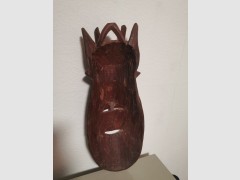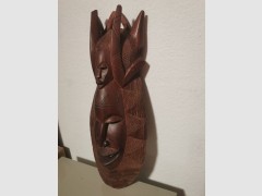 Schöne Holzmaske aus Afrika. Die Maske ist handgeschnitzt und wurde in den 80er Jahren direkt in Afrika erworben. Sie ist ca. 60cm hoch.