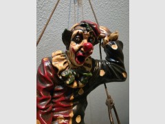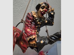 Super Zustand. Hohlfigur aus Harz (Resin) Seit über 40 Jahren im Familienbesitz. Maße: Gesamthöhe ca. 74 cm (inkl. Seilaufhängung) Clownbreite ca. 46 cm Clownhöhe ca. 30 cm Clowntiefe ca. 25 cm Gewicht ca. 2,6 kg