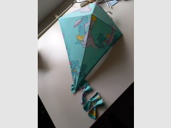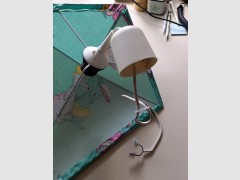 Lampe ist in türkisblau mit dem Motiv einer Dino Familie